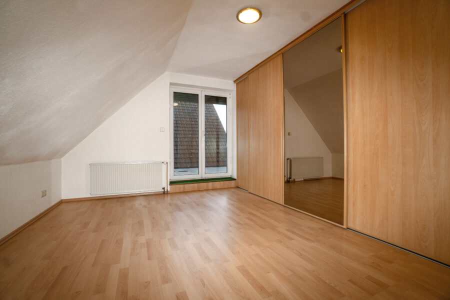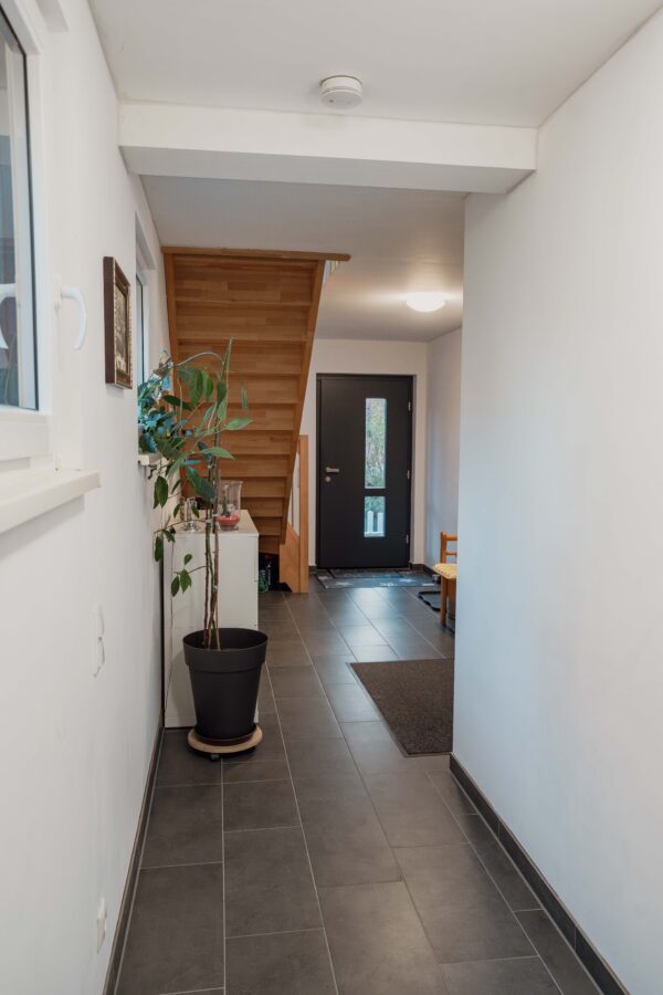 Das Obergeschoss bietet ein Schlafzimmer, ein modernes Badezimmer und ein weiteres Zimmer. Große Fenster sorgen in allen Räumen für viel Tageslicht und ein angenehmes Wohngefühl.