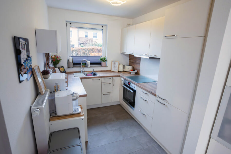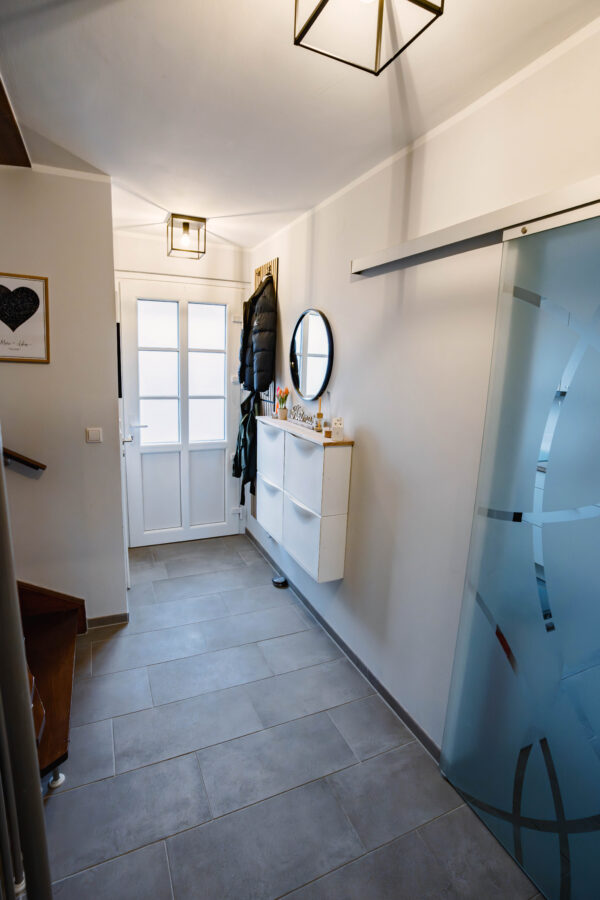 Im Erdgeschoss schaffen die offene Küche, das helle Wohnzimmer mit neu verlegtem Laminat sowie die neu gefliesten Bereiche in Küche, Flur und im Gäste-WC ein stimmiges und gepflegtes Gesamtbild. Im Wohnbereich besteht zusätzlich die Möglichkeit, einen Kamin einzubauen – für noch mehr Gemütlichkeit.