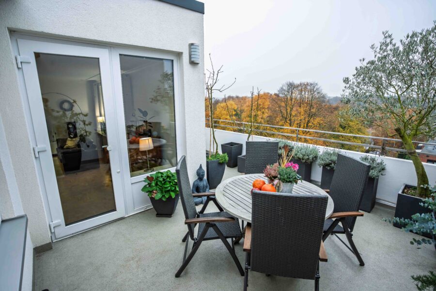 - schöne Dachterrasse mit Blick ins Grüne
